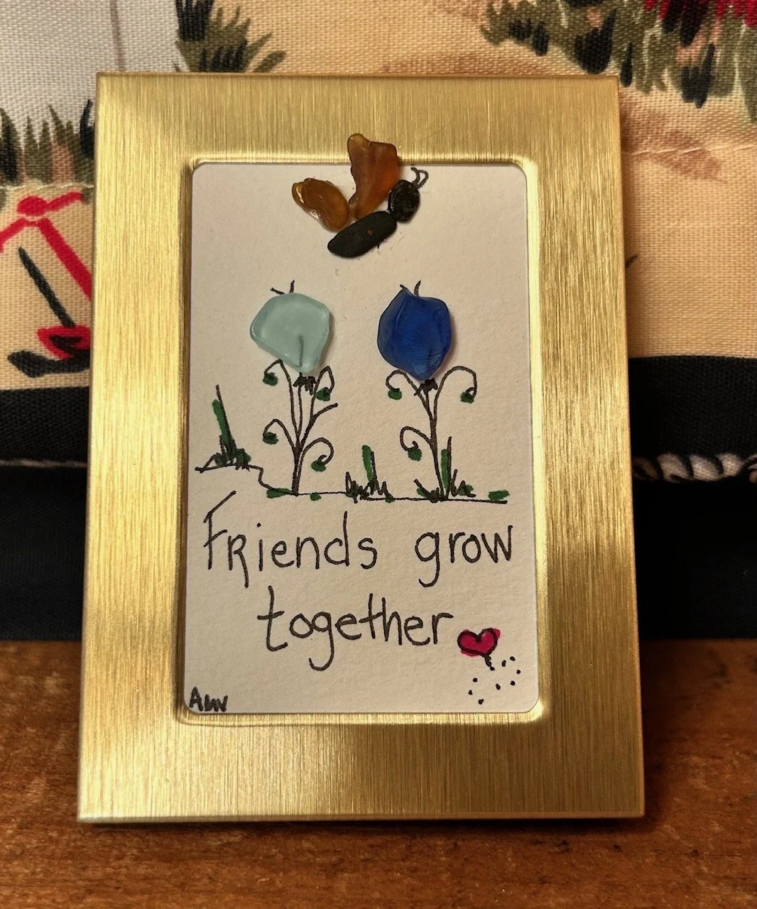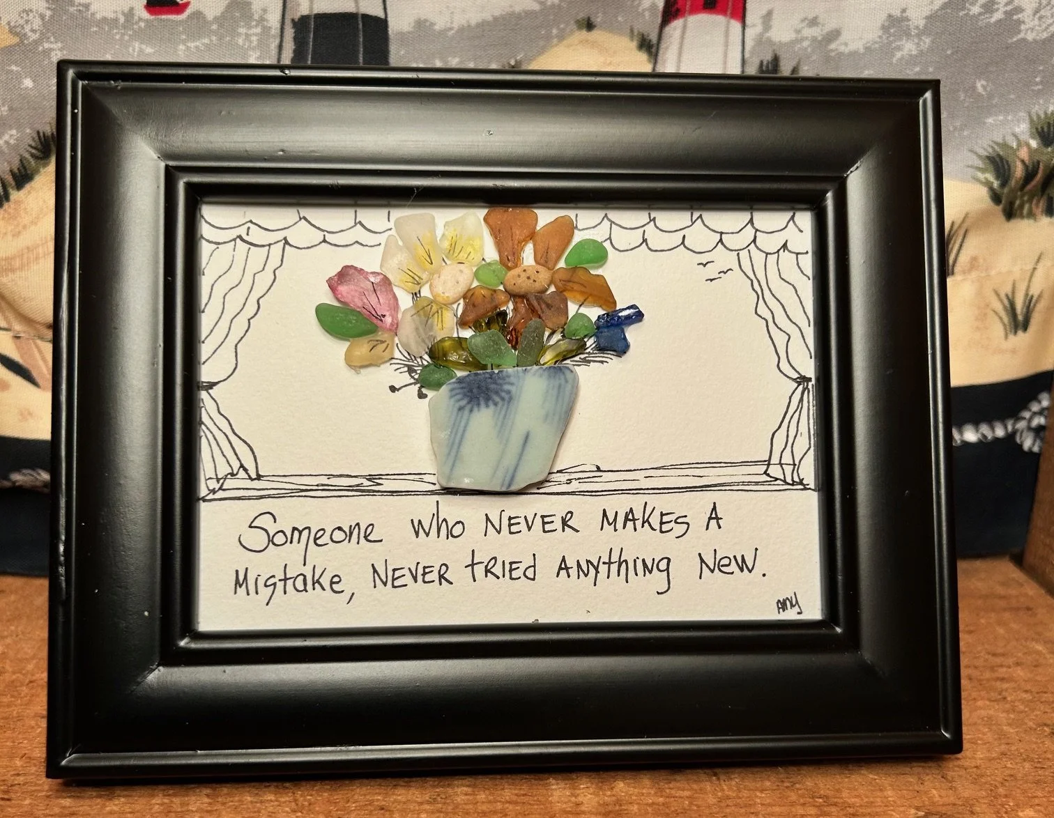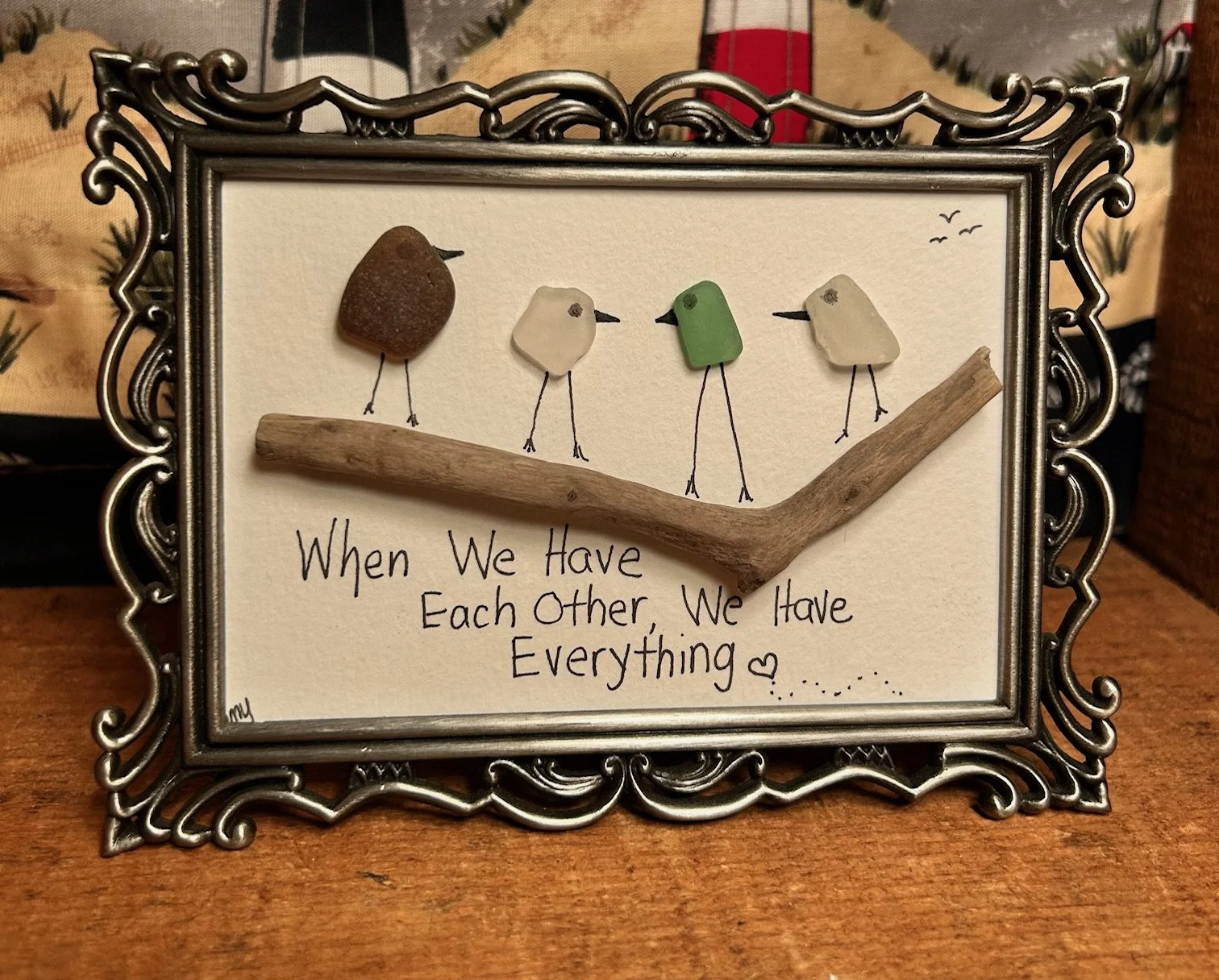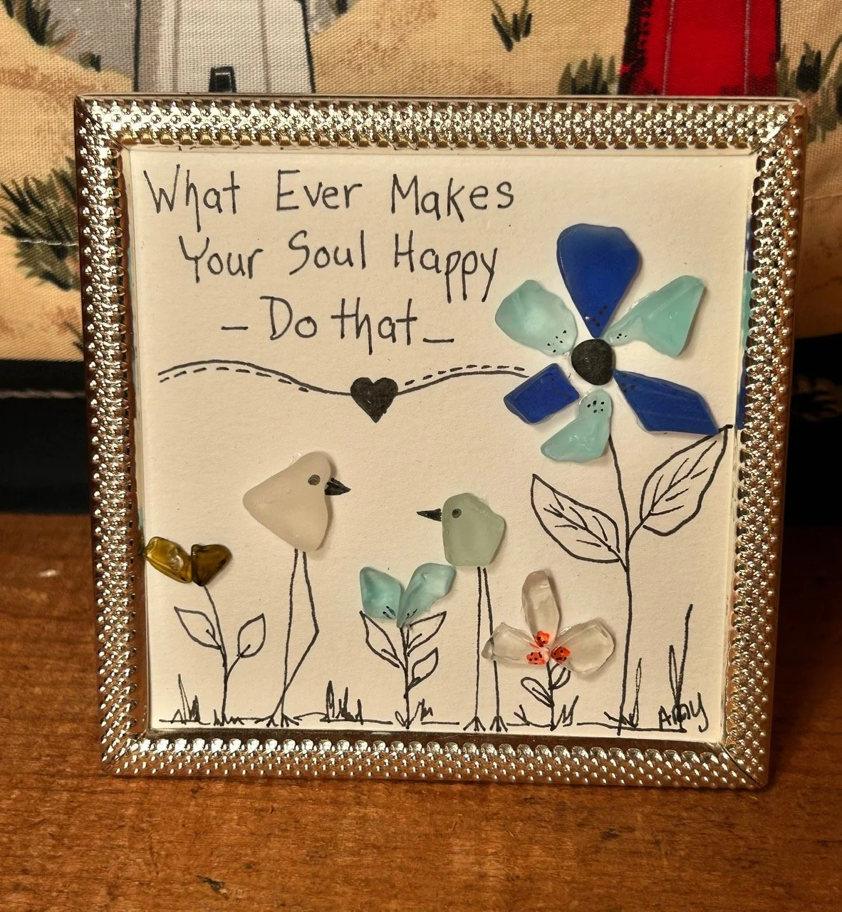 Shop Categories: All religious holiday Snowman Friends Birds-Cardinal Daughters Family Hummingbird Sea Creatures Natures Creatures Sports Related Animals Floral Sea Glass Picture Inspirational Saying All | religious | holiday | Snowman | Friends | Birds-Cardinal | Daughters | Family | Hummingbird | Sea Creatures | Natures Creatures | Sports Related | Animals | Floral Sea Glass Picture | Inspirational Saying | WE MAY NOT HAVE IT ALL TOGETHER... $22.00 Be Happy $22.00 Beach Pebbles and Sea Glass Skier Art $25.00 Coastal Serenity Nativity Scene $27.00 'Our Family Rocks' Sea Glass Art $27.00 The Stocking Were Hung $25.00 Butterflies Are Flowers That Fly $23.00 Always My Mom, Forever My Friend $22.00 Life Is Better in the Garden $23.00 My Hands Have Held Many Things... $21.00 When Someone You Love $22.00 The Best Thing to Hold Onto in Life is Each Other $22.00 Sea Glass Snowman in Green Frame $23.00 Make It Merry Snowman $25.00 Holiday Snoopy $23.00 Between the Pages of a Book Is a Wonderful Place to Be $22.00 Our Laughs, Limitless... $22.00 Home is Where My Dog Is $22.00 Family...The ones we live with, laugh with, and Love. $24.00 Lets Go Hiking $26.00 Ballerina $20.00 Life Begins the Day You Start a Garden $20.00 To Walk in Nature... $22.00 Snowman with Lights $23.00 Out in the Canoe $22.00 In The End It's Not the Years in Your Life That Counts, Its the Life in Your Years $24.00 I Get By With a Little Help From My Friends $22.00 Because No Great Story Ever Starts with a Salad.-SOLD Sale Price: $0.00 Original Price: $22.00 Sale Life Brings Tears, Smiles and Memories... $25.00 A Memory is a Photograph Taken By the Heart... $25.00 Those We Love Don't Go Away... $24.00 Sea Glass Flowers in an Oval Frame $23.00 Snail $12.00 When We Have Each Other We Have Everything $22.00 You Are My Sun, My Moon, and My Stars-SOLD Sale Price: $0.00 Original Price: $18.00 Sale You Move With Your Feet But You Dance With Your Heart-SOLD Sale Price: $0.00 Original Price: $22.00 Sale Flamingo in Black Frame $13.00 Sold Out Sea glass Duck $22.00 Someone Who Never Makes a Mistake, Never Tried Anything New-SOLD Sale Price: $0.00 Original Price: $23.00 Sale The The World You Are a Mother, But to Your Family You Are The World $24.00 You and I Together $23.00 Mothers Make the Best Friends-SOLD $17.00 Daughters Are Like Flowers That Fill the World With Beauty (#2)-SOLD Sale Price: $0.00 Original Price: $22.00 Sale Beach Stone Family of 3 and a Dog $22.00 Daughters Are Like Flowers That Fill the World With Beauty-SOLD Sale Price: $0.00 Original Price: $22.00 Sale Beach Stone-Family of 3 with Dog $23.00 Family of Four - Pebble People $22.00 Blue Flower with Hummingbird-SOLD Sale Price: $0.00 Original Price: $23.00 Sale You Make Every Day Brighter With Your Smile #2 $22.00 You Make Every Day Brighter With Your Smile $22.00 The Dearest Things I Know Are What You Are $22.00 Find Your Sunshine $15.00 Jelly Fish -"Friends" $14.00 Friends Grow Together $13.00 Baseball Player $17.00 Summer Fun- Ice Cream Cone-Sold Sale Price: $0.00 Original Price: $11.00 Sale Dove of Peace $20.00 Oval Flowers in Frame $15.00 Thank You For Being A Friend-Sold Sale Price: $0.00 Original Price: $20.00 Sale A Good Friend Is Hard to Find... $20.00 Being Unique Is Better Than Being Perfect-Sold Sale Price: $0.00 Original Price: $20.00 Sale Sea Glass Flowers in a Basket $24.00 Make if Merry $20.00 Sea Glass Heart-Sold Sale Price: $0.00 Original Price: $27.00 Sale I Love Pickleball-SOLD Sale Price: $0.00 Original Price: $12.00 Sale Flowers in a Stone Pot-Sold Sale Price: $0.00 Original Price: $14.00 Sale Pink Flamingo-Sold Sale Price: $0.00 Original Price: $14.00 Sale I Hope You Dance- Sold Sale Price: $0.00 Original Price: $22.00 Sale Love Whoo ... You Are-SOLD Sale Price: $0.00 Original Price: $13.00 Sale Fox on a Rock-SOLD Sale Price: $0.00 Original Price: $22.00 Sale Hiking Together-SOLD Sale Price: $0.00 Original Price: $26.00 Sale Life is All About Balance-SOLD Sale Price: $0.00 Original Price: $12.00 Sale Like 2 Peas in a Pod!-SOLD Sale Price: $0.00 Original Price: $12.00 Sale Ballerina in White-SOLD Sale Price: $0.00 Original Price: $22.00 Sale A Great Day to Be Out Paddling-SOLD Sale Price: $0.00 Original Price: $24.00 Sale Snoopy- Sold Sale Price: $0.00 Original Price: $22.00 Sale What Ever Makes Your Soul...Sold Sale Price: $0.00 Original Price: $20.00 Sold Out Watching the Lighthouse-Sold Sale Price: $0.00 Original Price: $30.00 Sold Out
